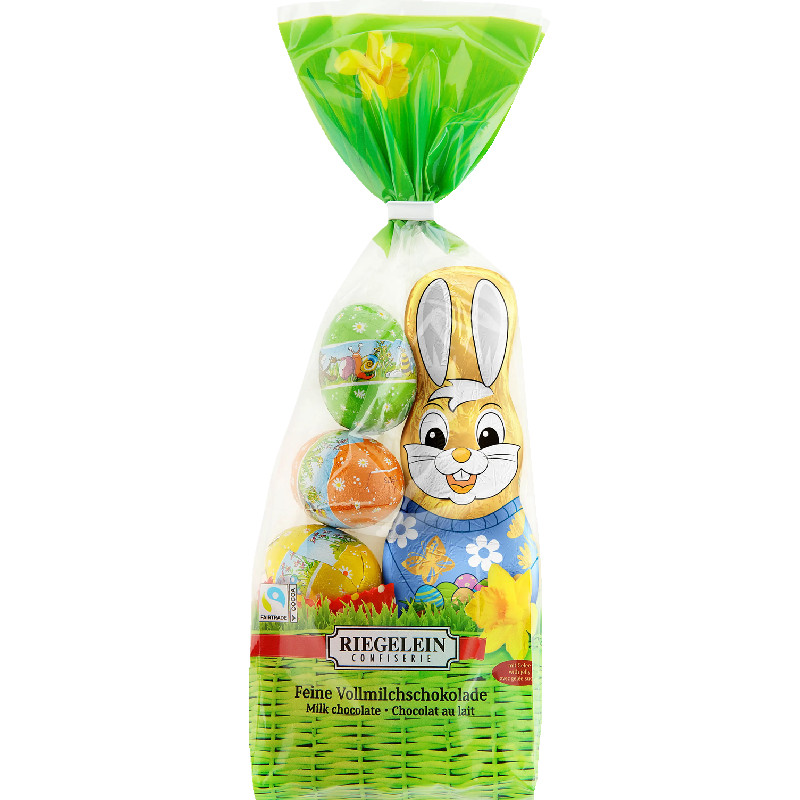 Forkæl familien med Riegelein Påske Mix, en kærligt sammensat blanding af påskeslik og chokoladekaniner. Posens farverige chokoladefigurer i kaninform kombineres med geléstænger og små påskeæg, der gør slikket ekstra sjov og varieret. Den forårs-inspirerede emballage giver påskekurven et festligt udseende og gør blandingen til den perfekte gave eller lille overraskelse til børn og voksne. Med Riegelein påskeblandingsposen får du noget for enhver smag og en stemningsfuld påskeoplevelse fyldt med søde lækkerier.
